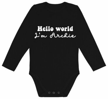 Tekst: Hello World! Voer zelf de naam van de baby in, in het tekstveld.