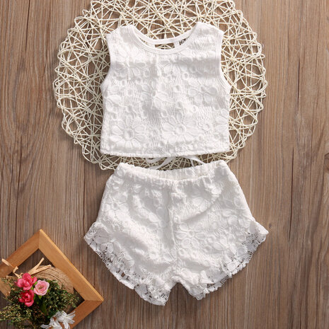 Kanten Meisjes Setje Maat 90 voor kindjes van ca 2 jaar. Setje bestaat uit een top en broekje. Super leuk voor de zomer!